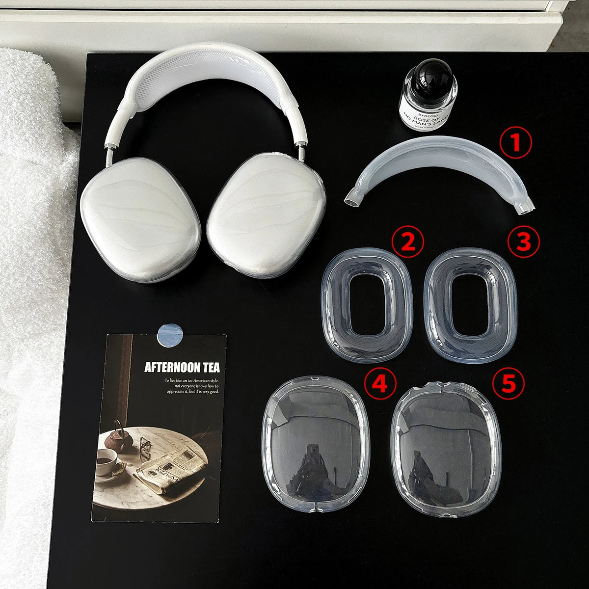 5 in 1 Transparent Protective Case for Airpods Max Silicone Clear Headphone Cover for Air Pods Girl Women Minimalist Soft Shell