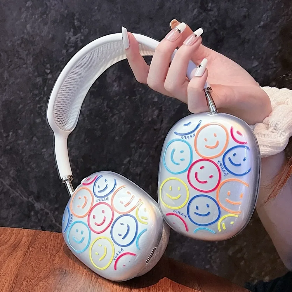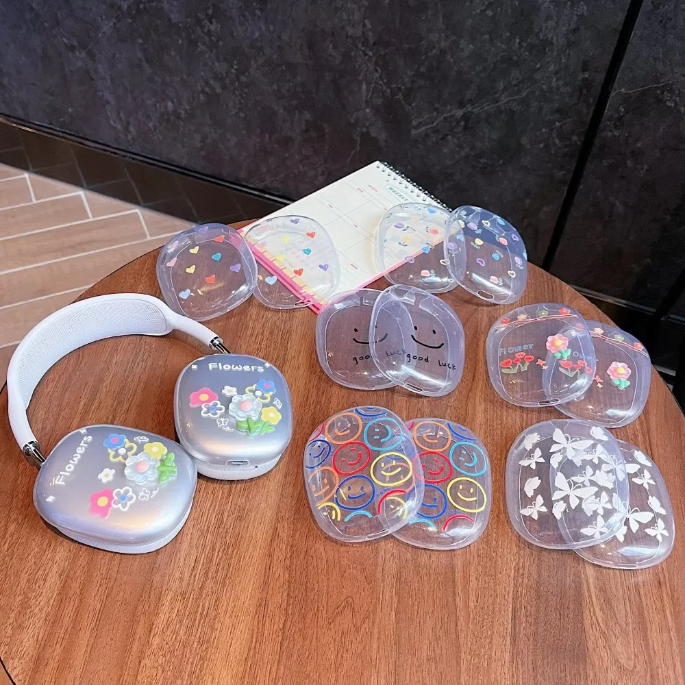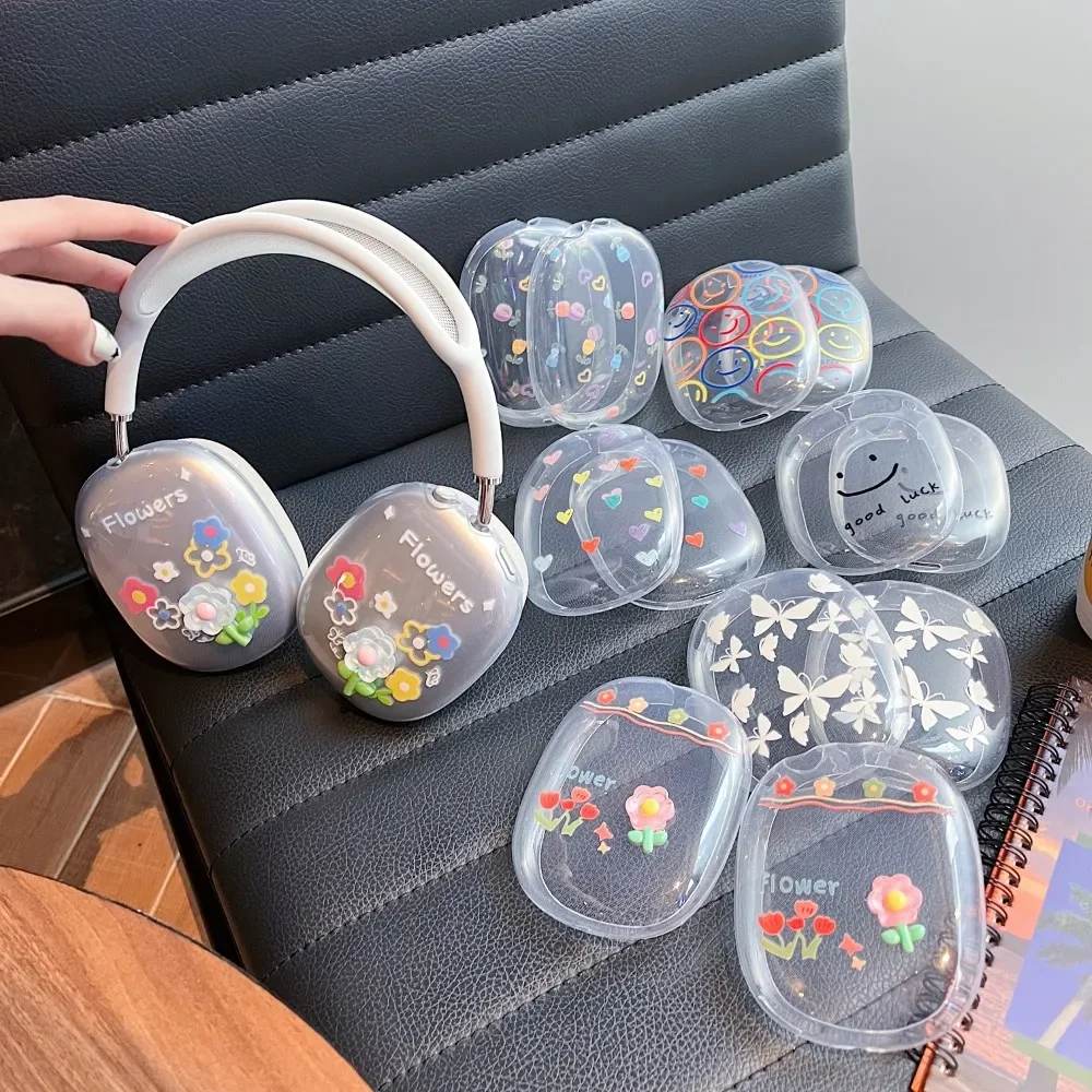 For AirPods Max Cute pattern Transparent Case Soft Silicone TPU Shockproof Cover Sleeve Protective Cases Headphone Accessories