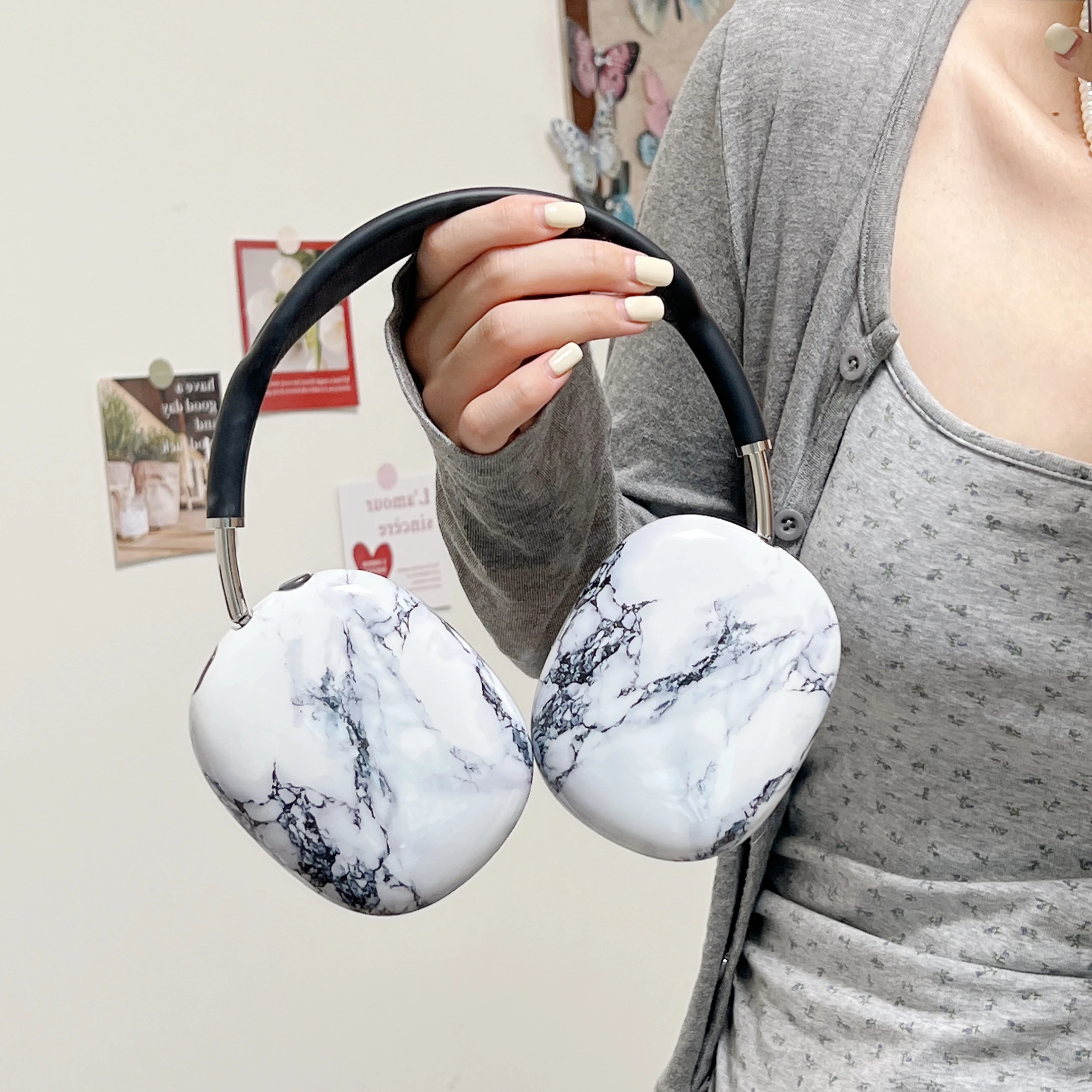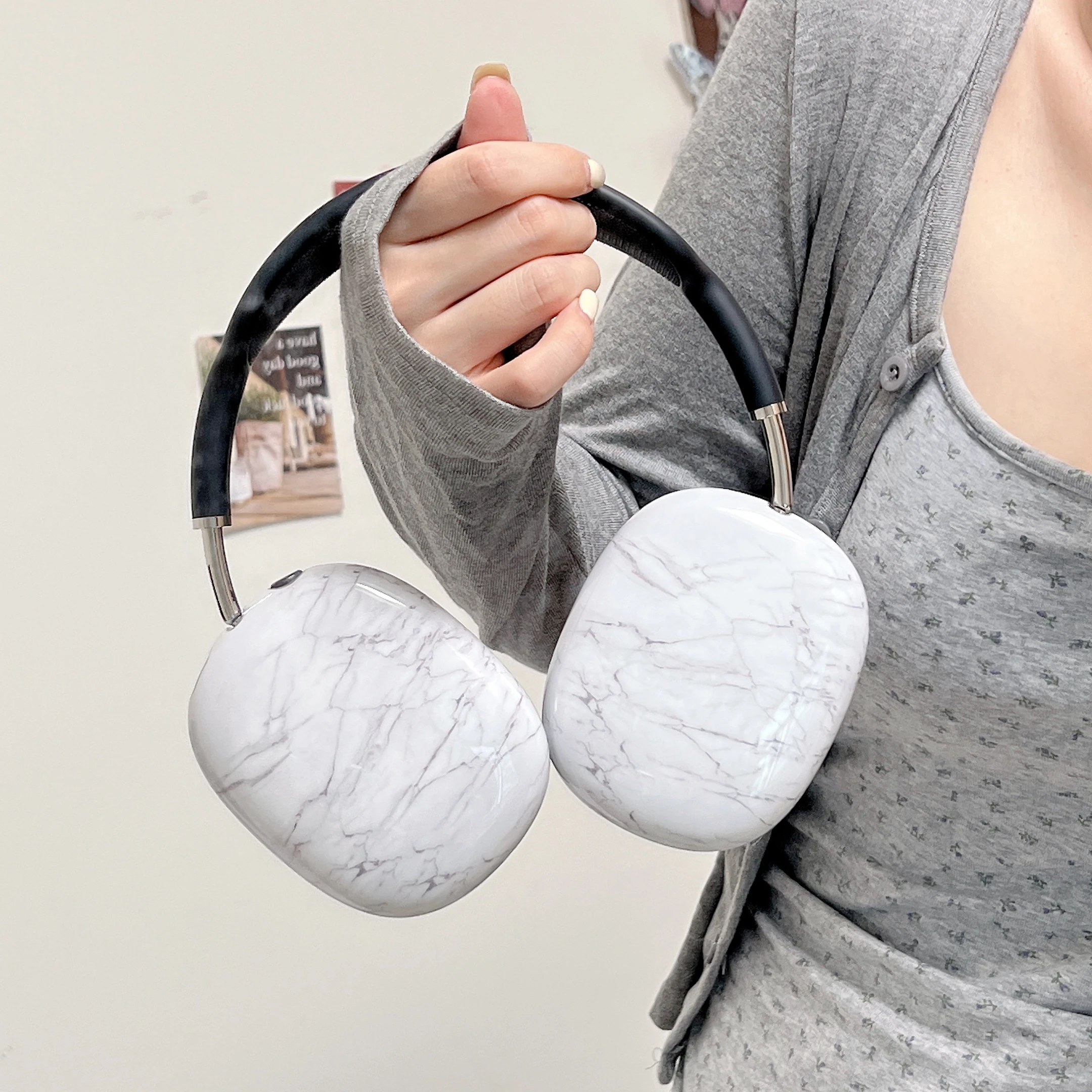 Suitable for Apple Airpods Max protective case, transparent TPU soft shell, Bluetooth earphone headset, fashionable and trendy anti drop and anti scratch earmuffs, decorative and anti fall full package, glossy surface, creative and personalized foreign trade shell pattern