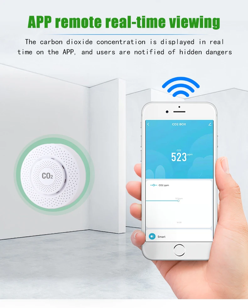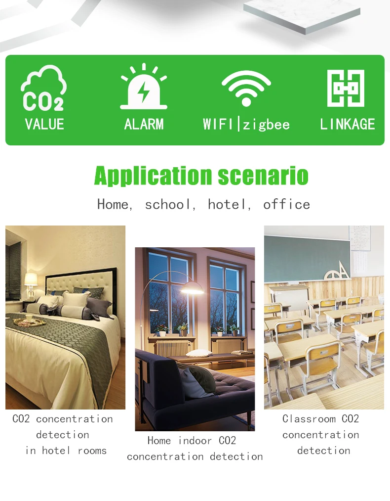 Detection of indoor air CO2 concentration and reference function. Display 1 value in the graffiti app and can be linked with other Tuya smart home devices (Note: the data is for life reference only, non professional detection instruments)