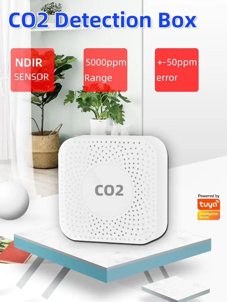 Tuya CO2 Carbon Dioxide Sensor co2 detector NDIR High-precision Measurement Exceeds Standard Alarm Smart Home Linkage tuya senso